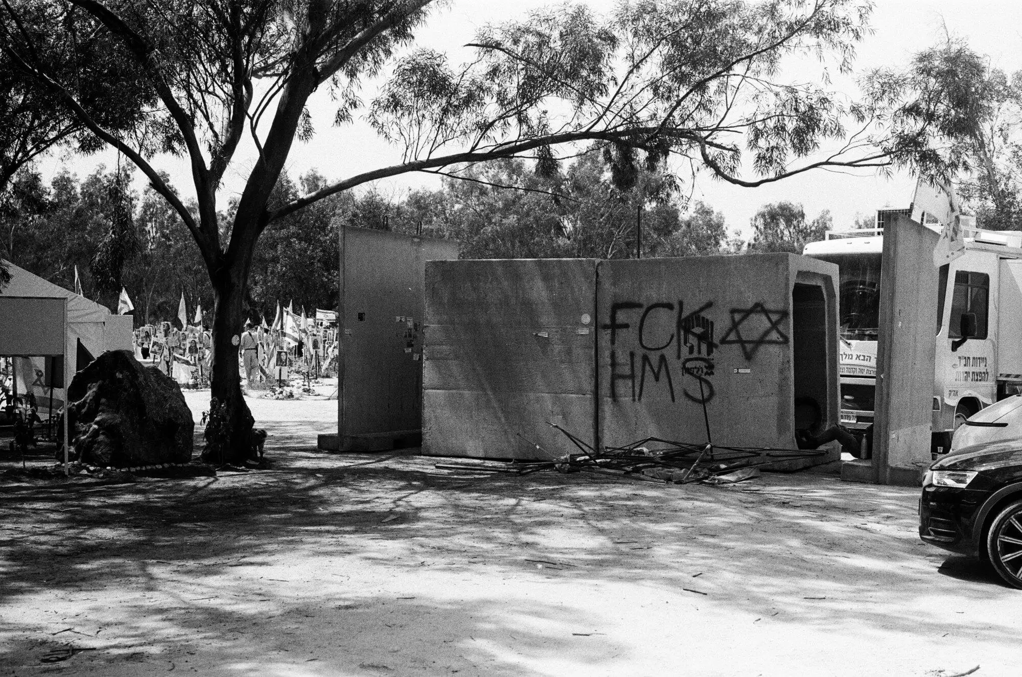 During a visit to Kibbutz Nir Oz, the Tkuma vehicle cemetery,