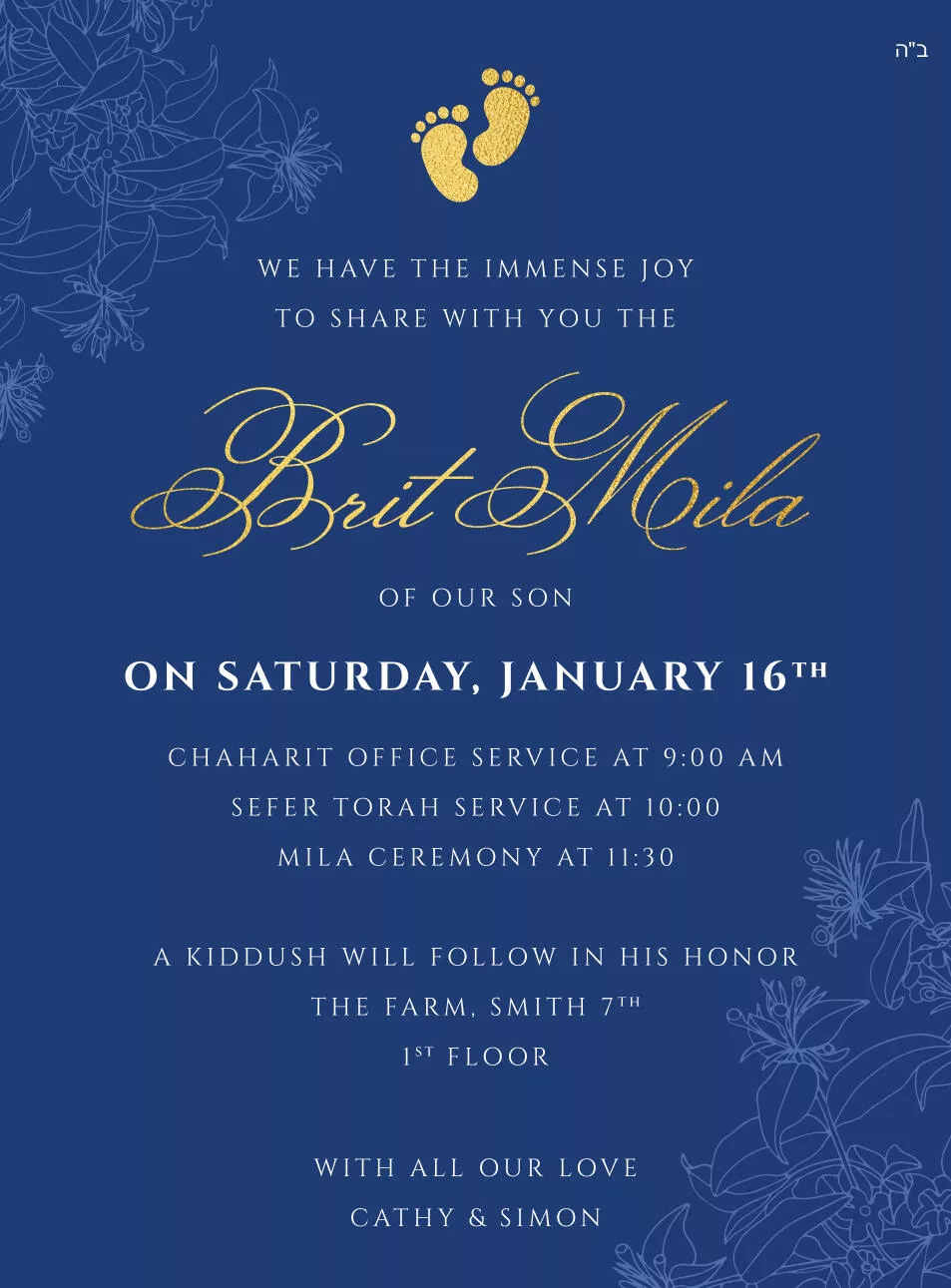 Brit Mila Invitation – Cathy & Simon